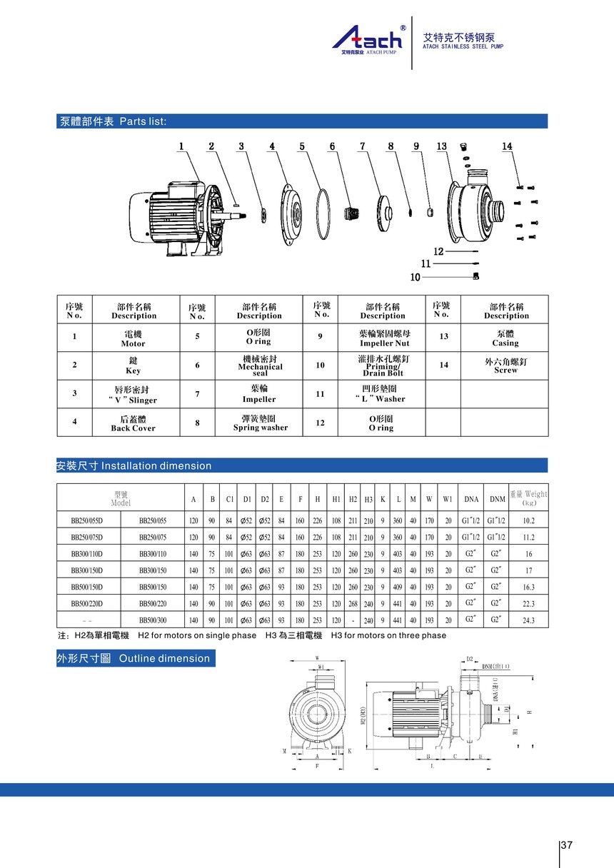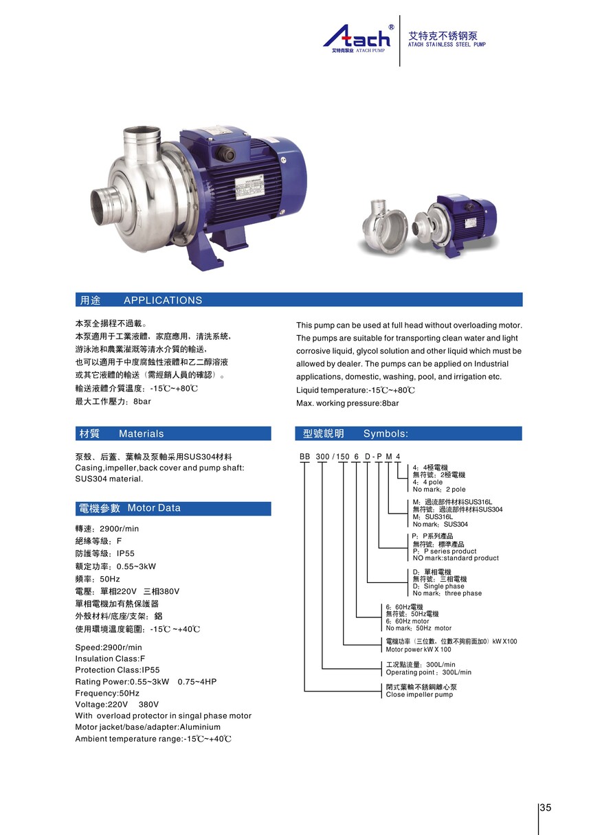Atach Horizontal Centrifugal Water Pump Suitable for Irrigation BB250-055/AISI304 centrifugal pump/AISI 316L centrifugal pump/AISI 316 centrifugal pump