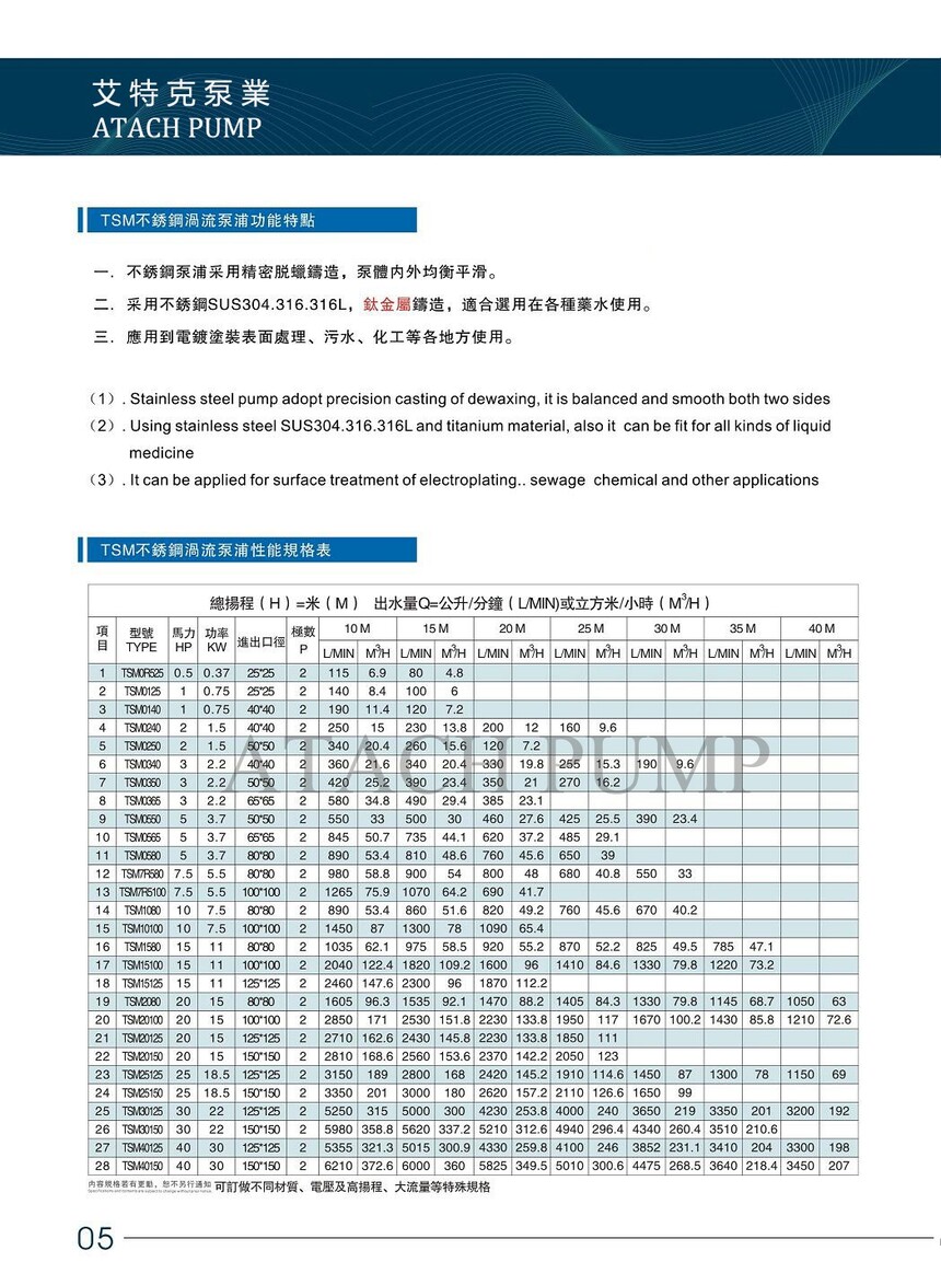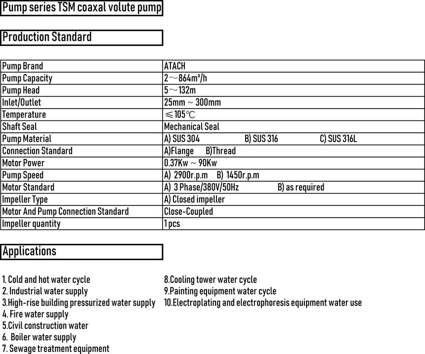 Water Pump 415V 50/60Hz 5 Inch Atach Brand of China TSM20125 Bomba centrífuga/Bomba autocebante de acero inoxidable 316/Bomba de circulación de tuberías