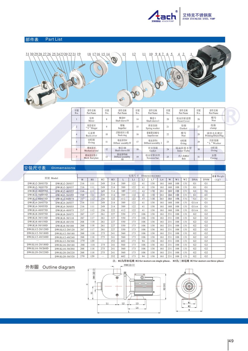 Atach Horizontal Centrifugal Multistage Water Pump DWK2-30/037 Horizontal single-stage end-suction centrifugal pump/vertical inline pump/self-priming sewage pump